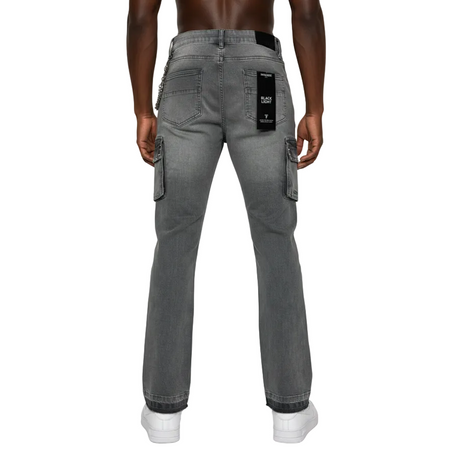 BLACK LIGHT DISTRESSED CARGO JEANS