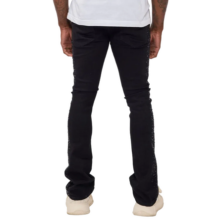 ROAR DENIM RHINESTONE STACKED JET BLACK