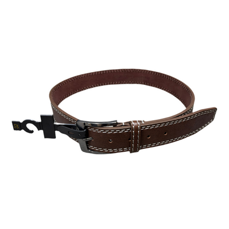 GENUINE LEATHER WHITE STITCHED BROWN BELT