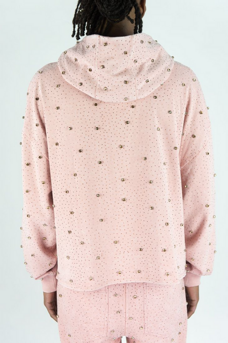 REBEL PULLOVER HOODIE ROSE GOLD STONES