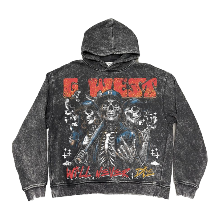 Big And Tall G West Acid Grey/Red "I Love My Game" Vintage Hoodie
